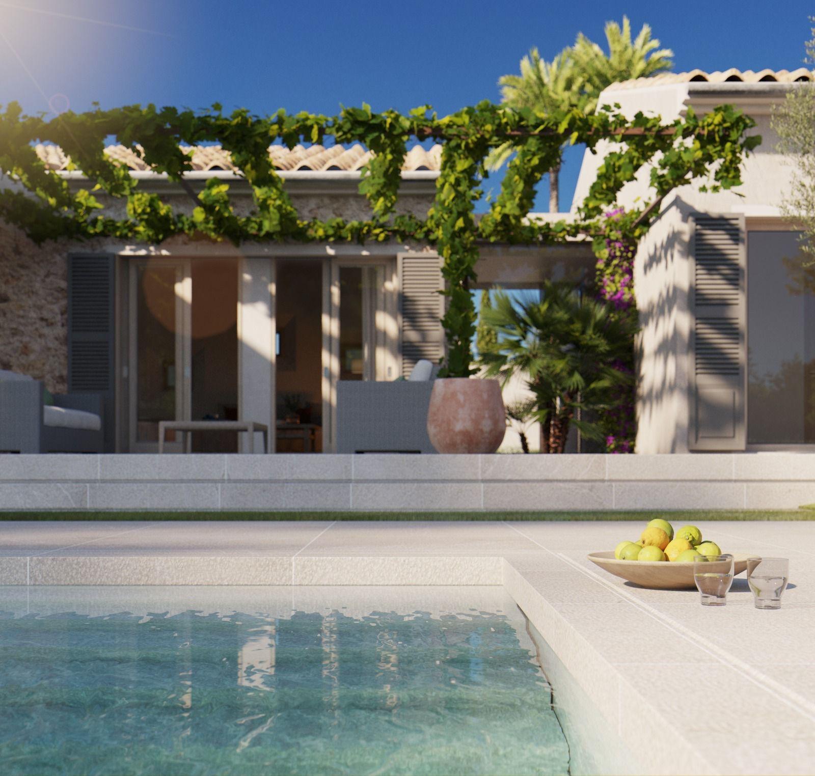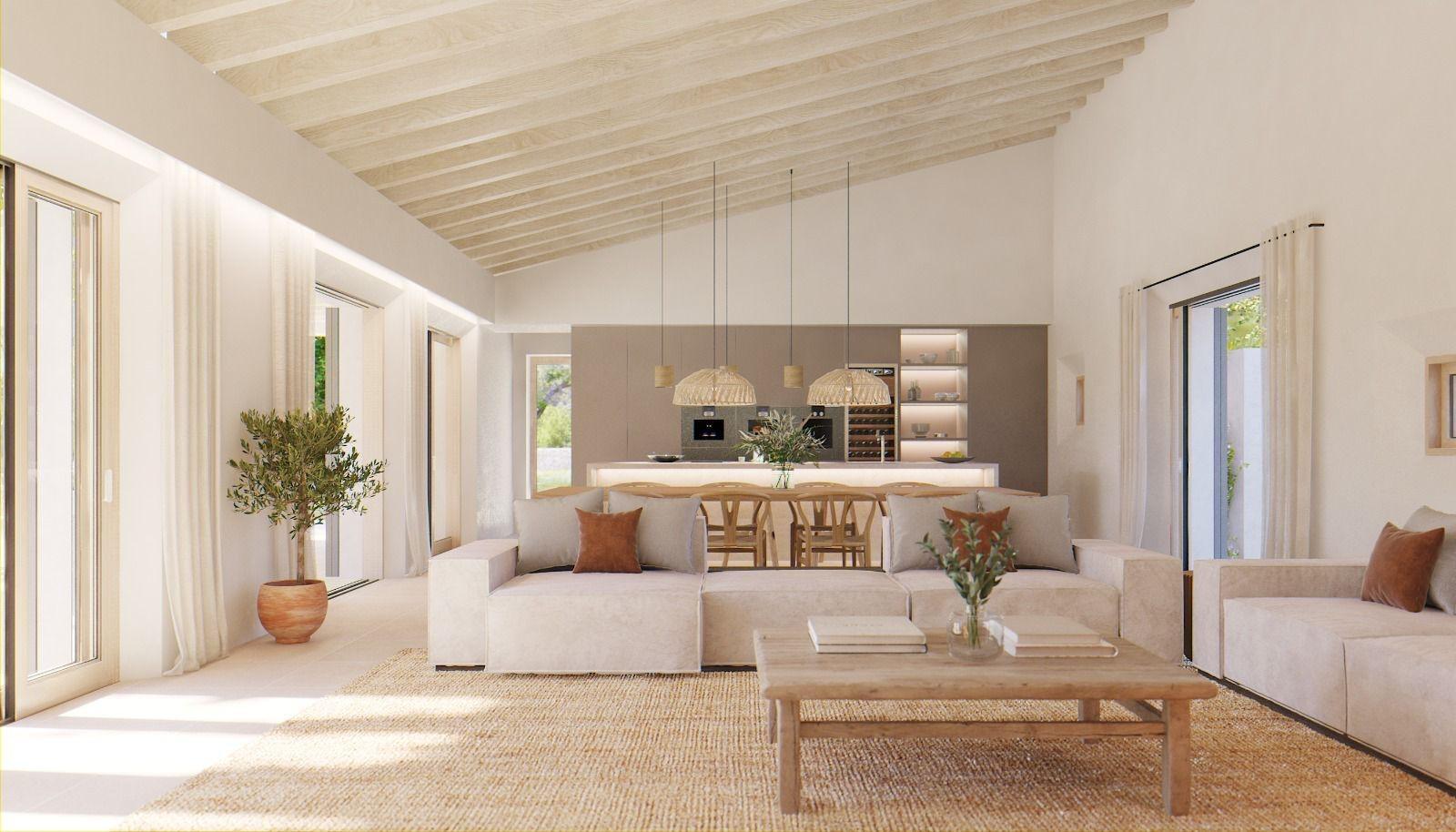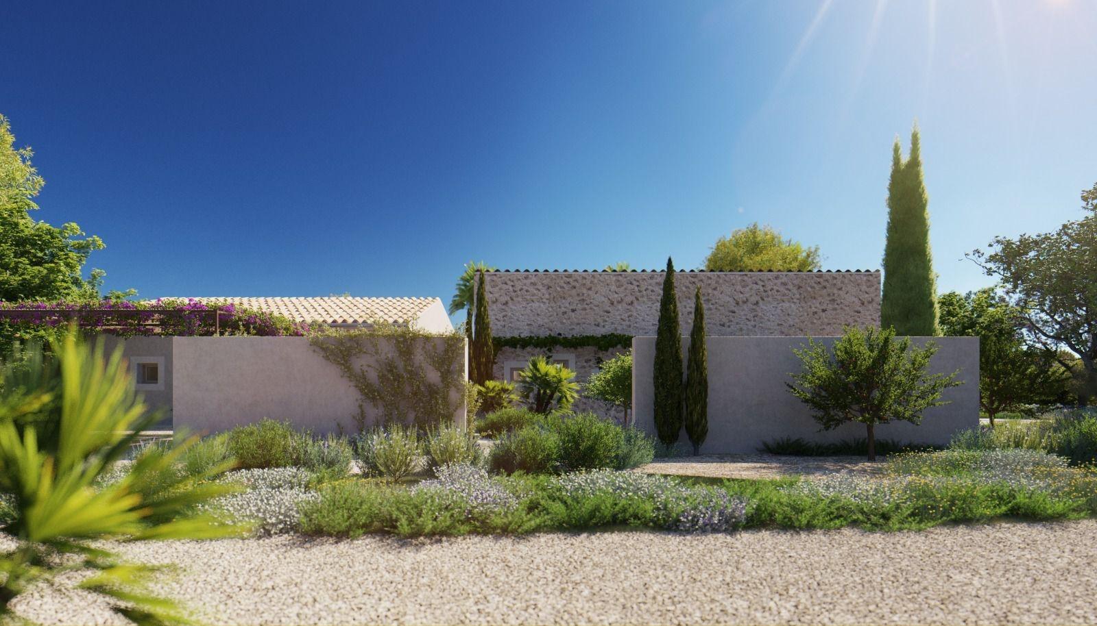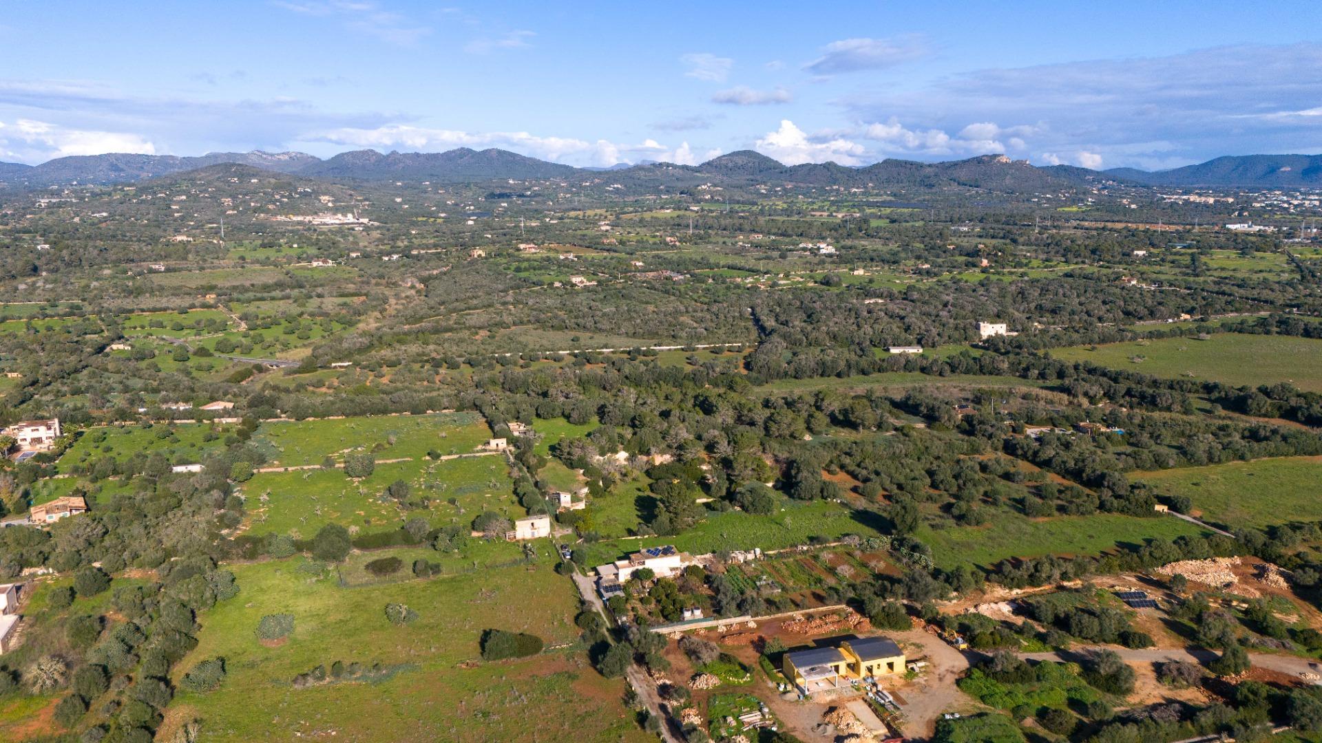 Located just 2 km from the coast, it offers privacy, natural surroundings, and unobstructed mountain views, in an ideal location for a single-family home in eastern Mallorca.The project envisages a single-story construction with a usable area of 158.sqm, distributed into a living room, dining room, separate kitchen, three bedrooms, two full bathrooms, a toilet, laundry room, hallway, and two covered porches (17.sqm 11.sqm).