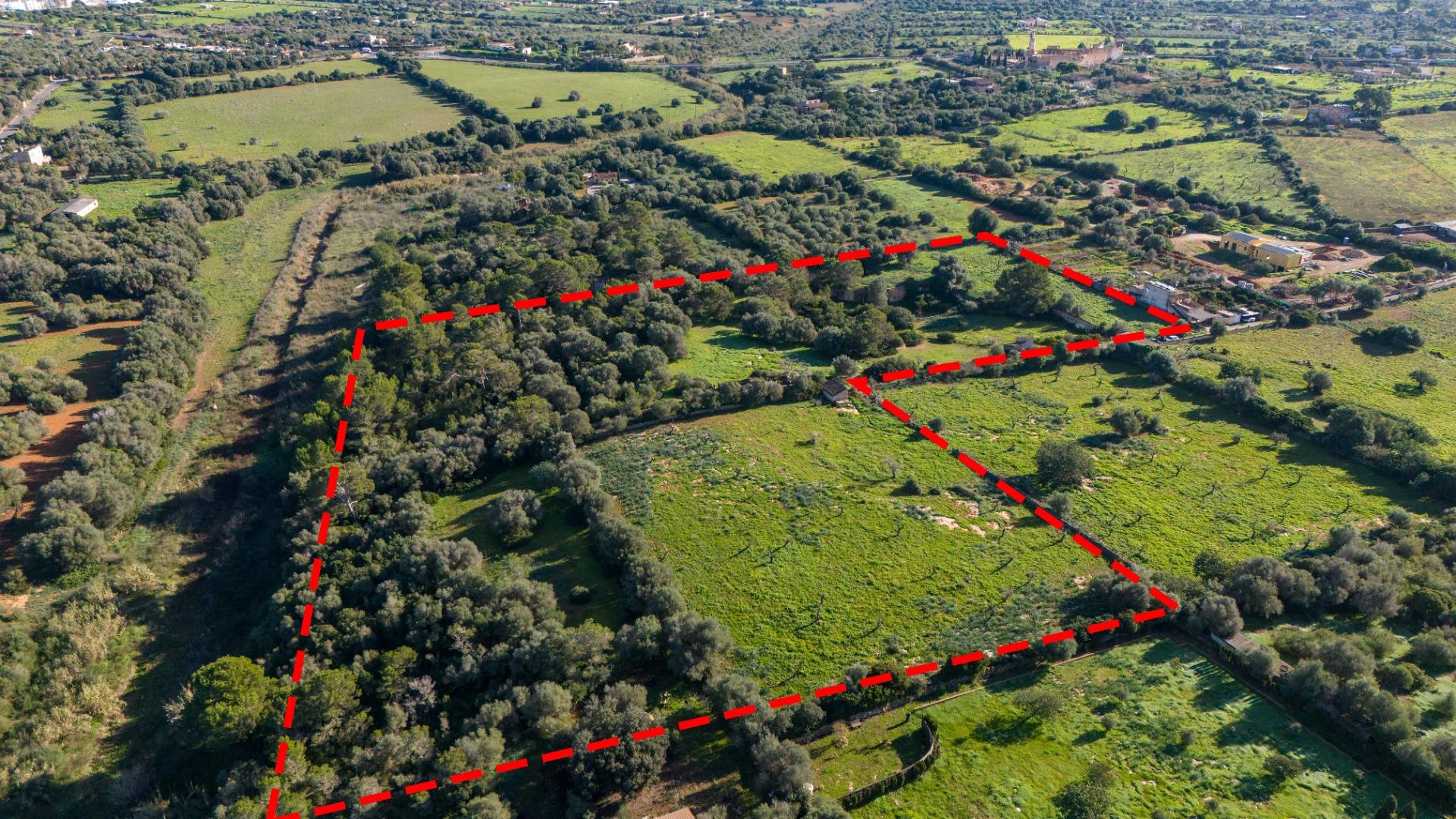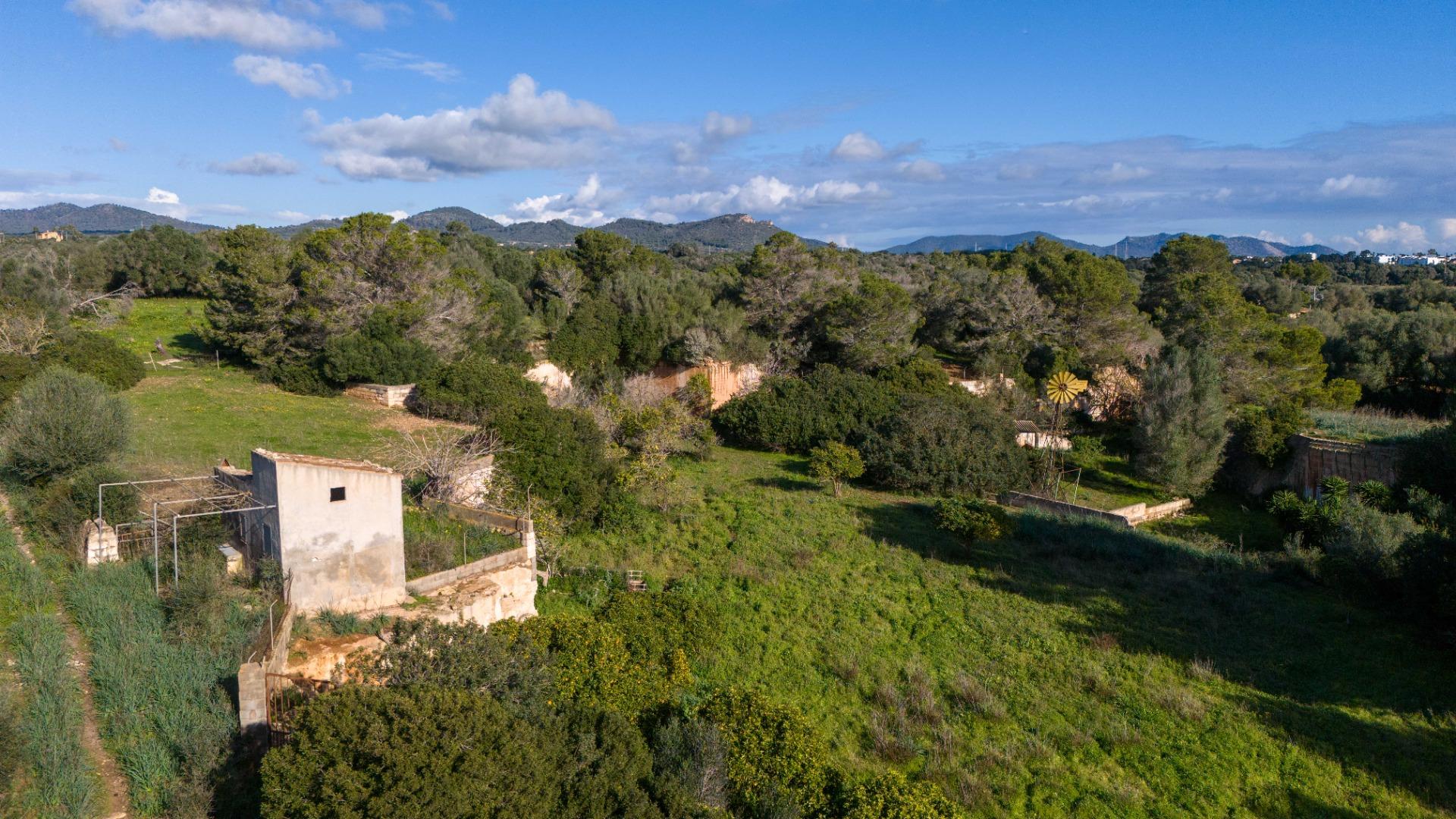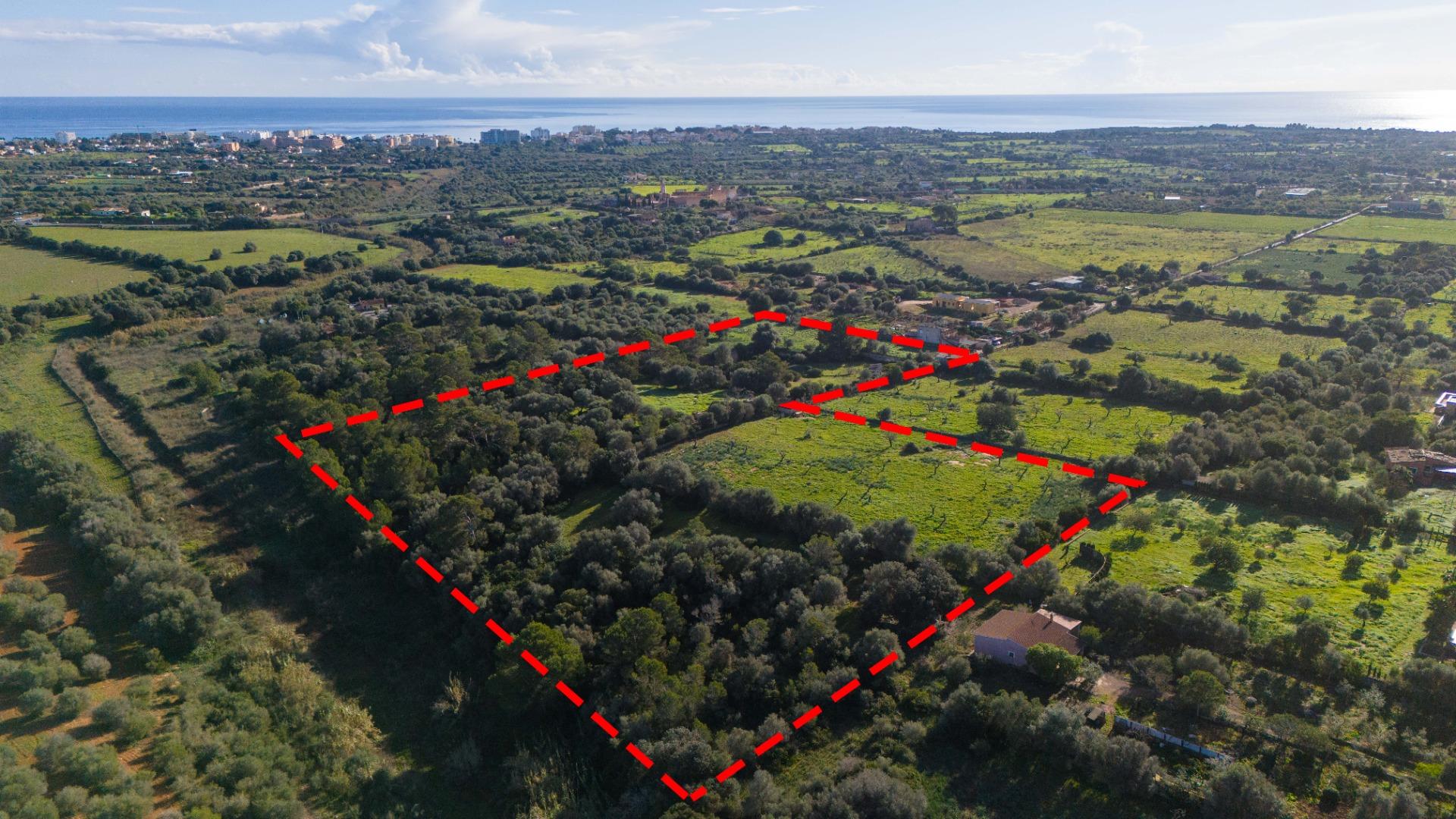 In the quiet area of Sa Gruta, between Porto Cristo and Cala Millor, you will find this large rustic plot of 17,sqm, with a basic project submitted in 2018 to the Manacor Town Hall.