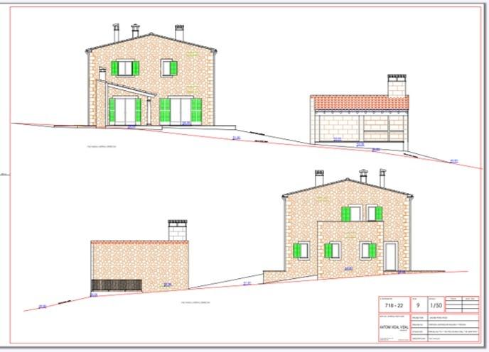 It has an approved basic project for the construction of a detached single-family house of 298sqm with traditional Mallorcan design. The distribution includes a spacious living-dining room with integrated kitchen, 4 double bedrooms with bathroom en suite (one with private terrace), guest toilet and laundry area.